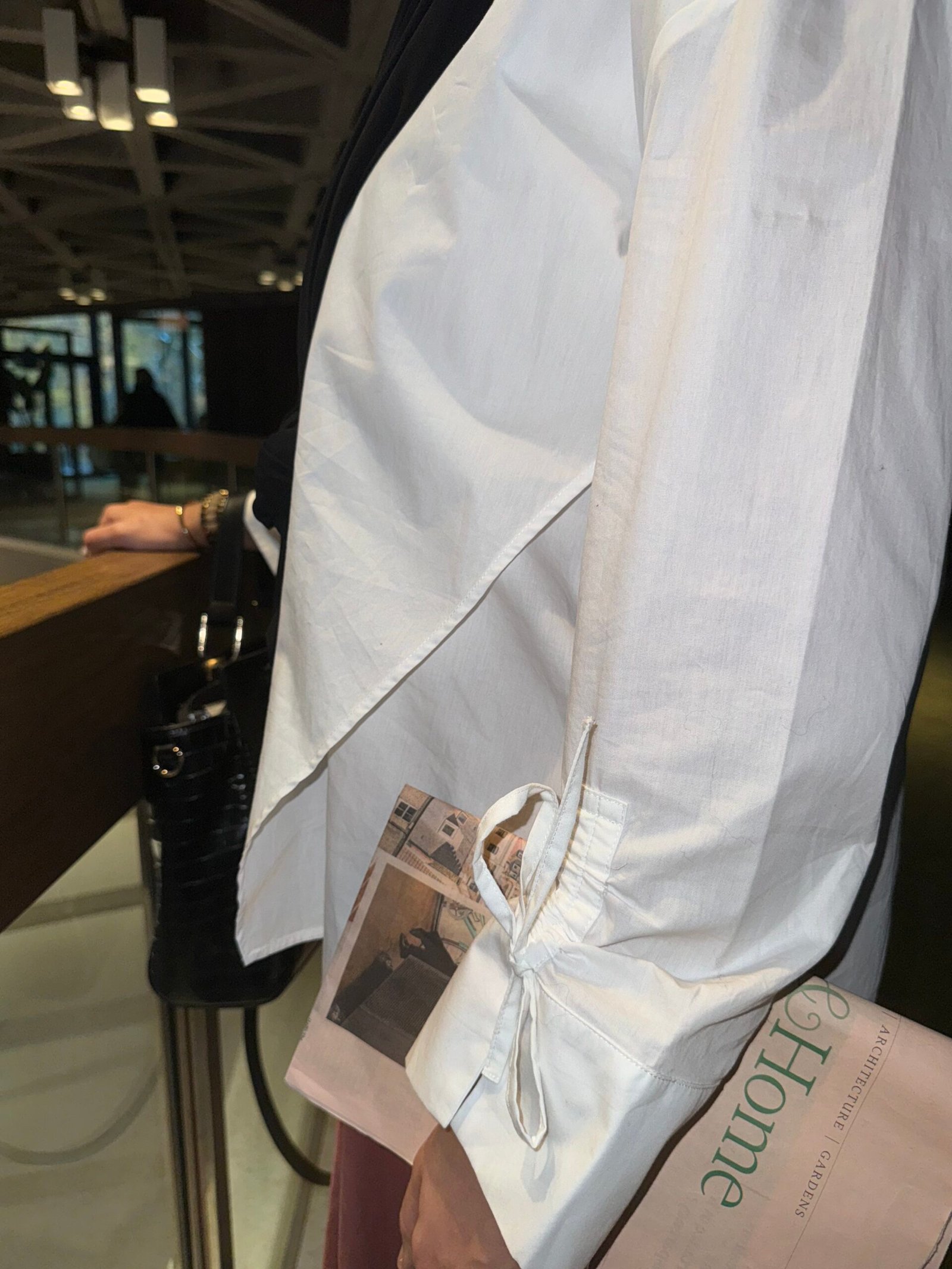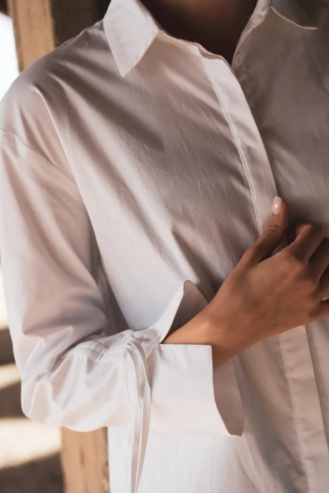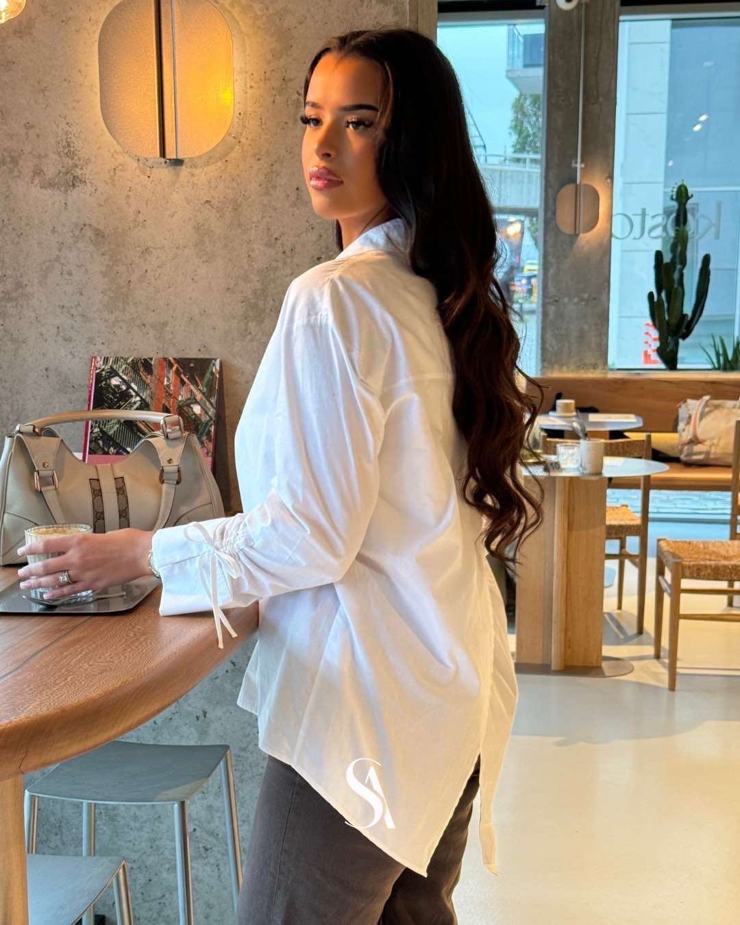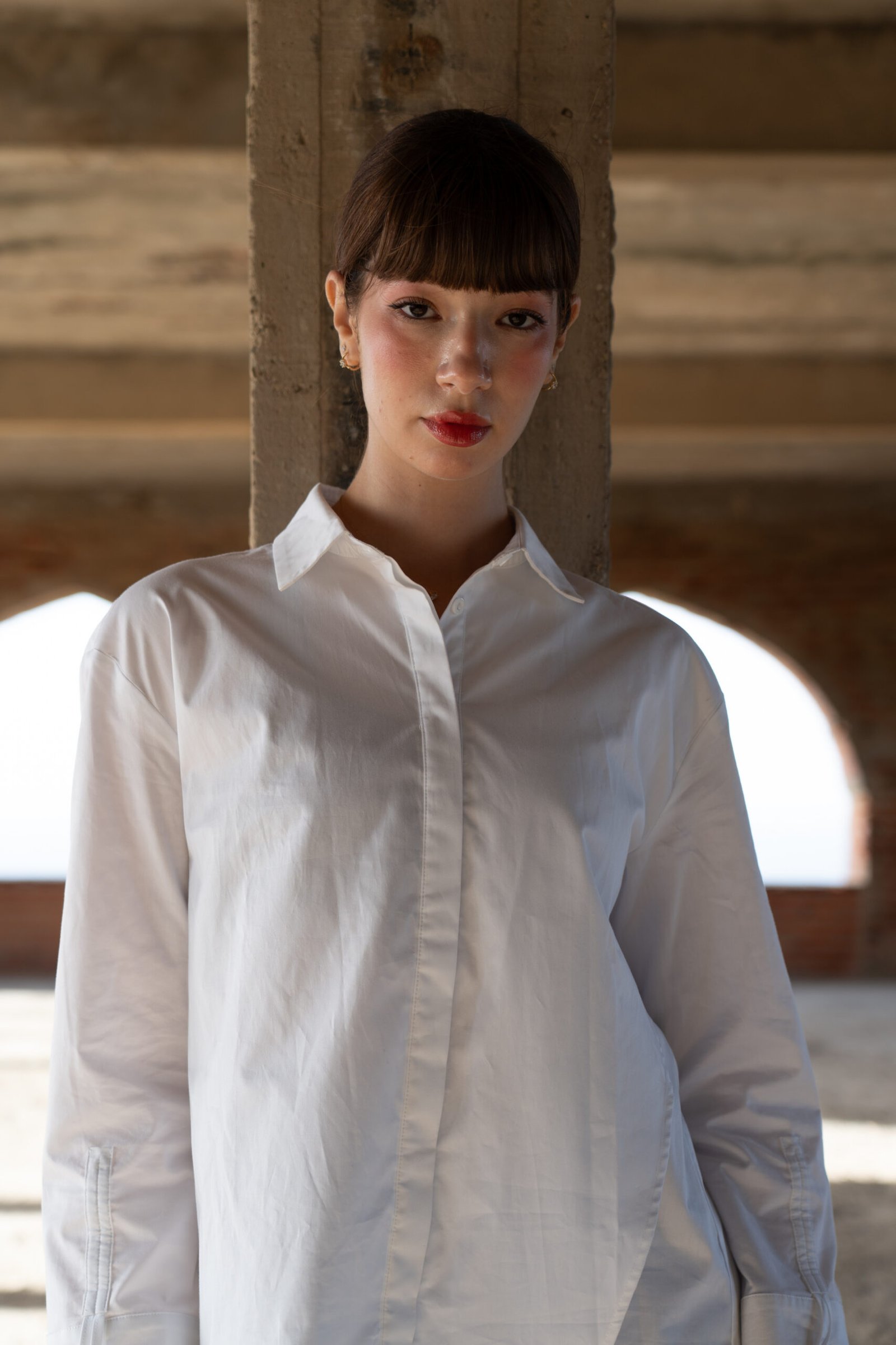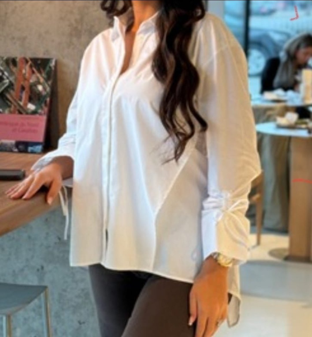 Découvrez notre chemise blanche, un essentiel revisité avec raffinement et subtilité. Conçue avec 80% coton et 20% polyester de qualité, elle allie confort et sophistication pour un look impeccable en toutes occasions. Une asymétrie délicate à l’arrière du dos, des manches soigneusement retroussables grâce à un fil discret permettant de créer un nœud élégant,