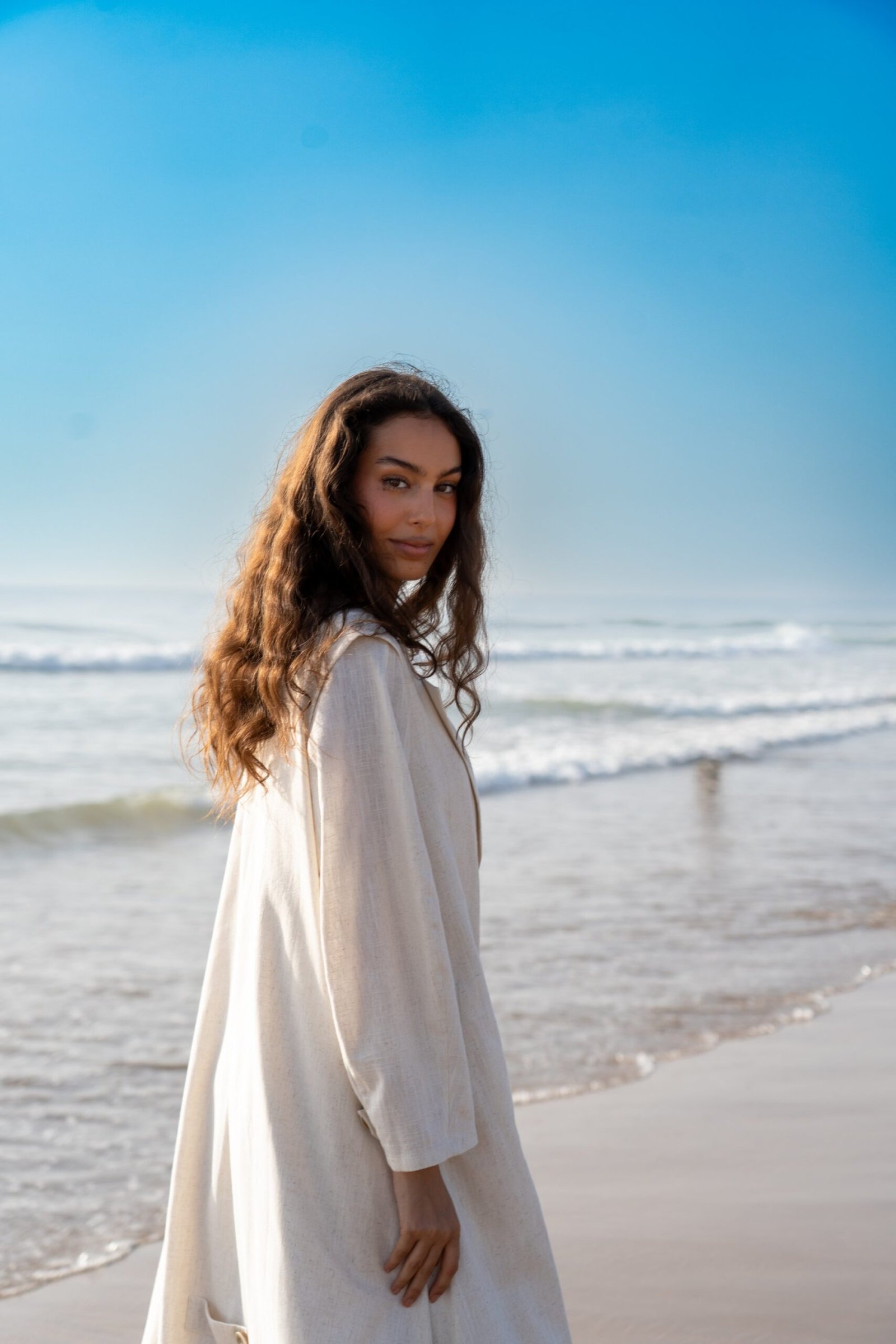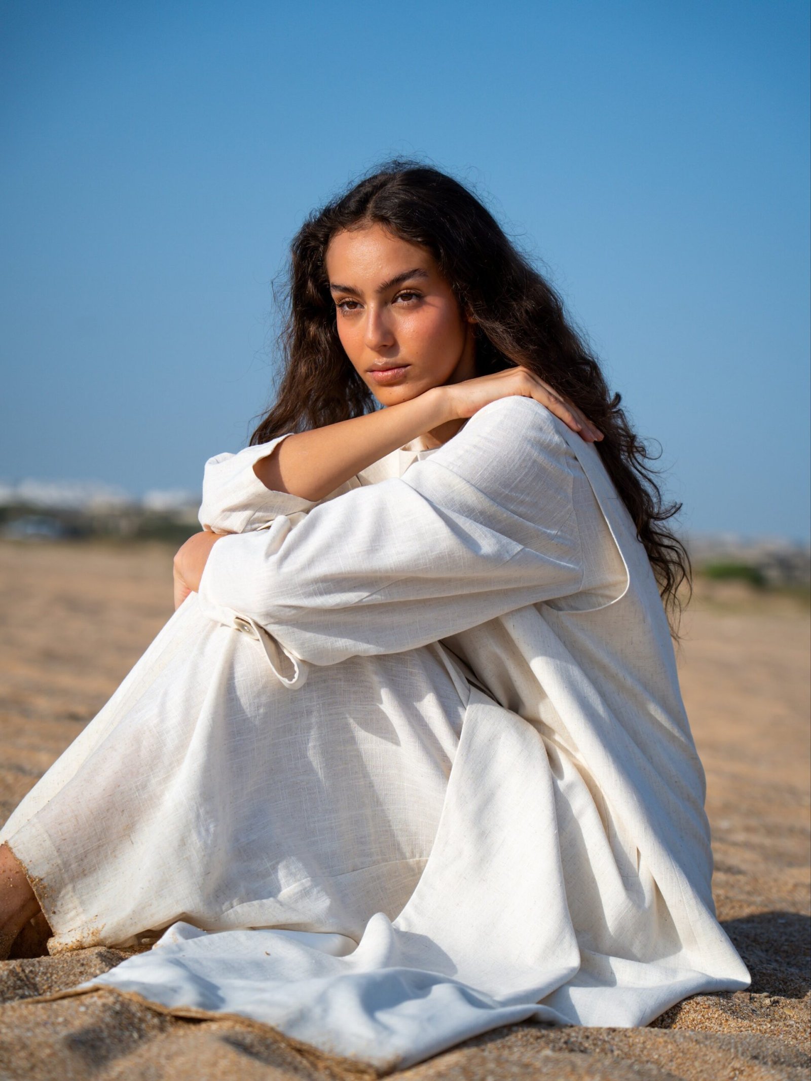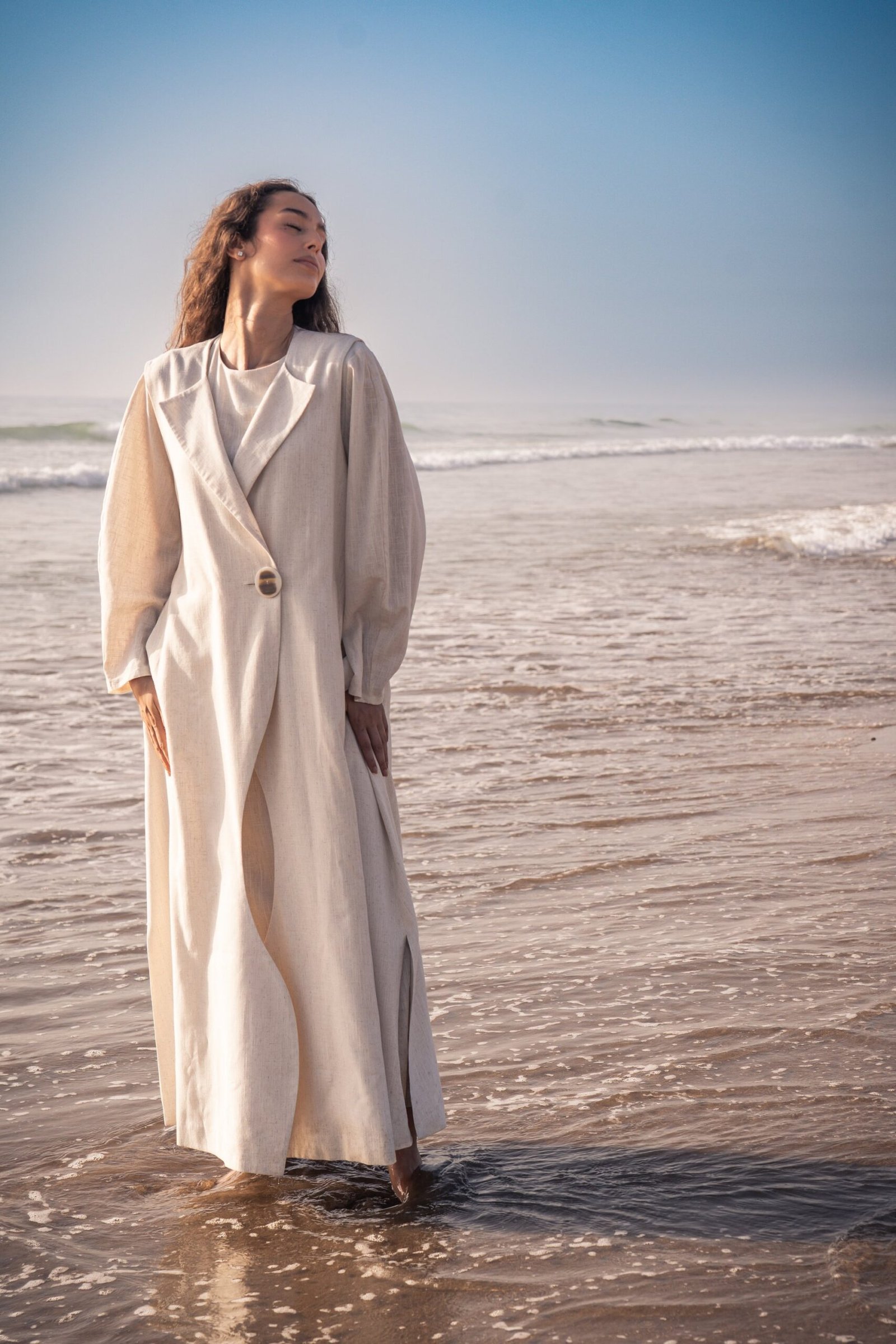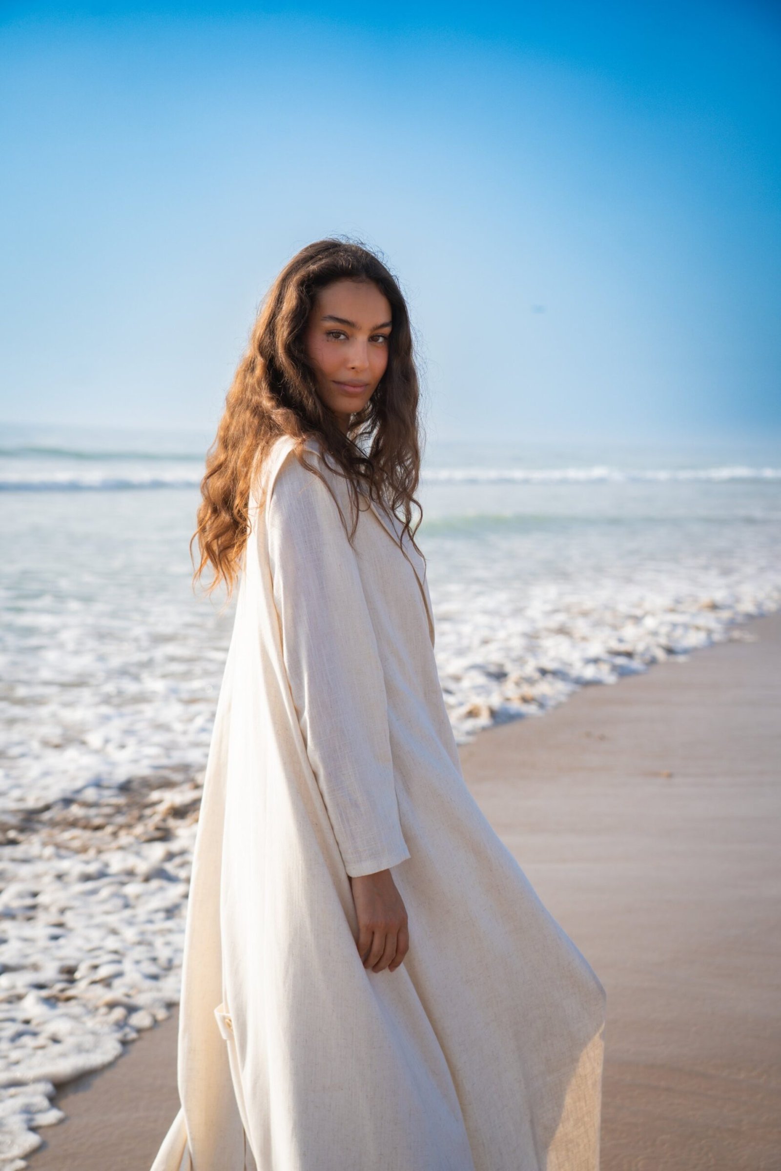 La Sahara un Ensemble Robe et Kimono Long en Lin – Beige